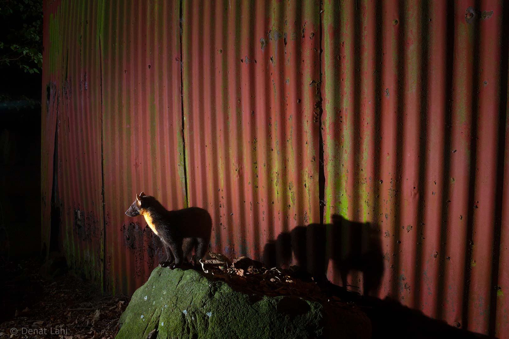 A Pine Marten in a abandonded barn, photographed by wildlife photographer Denat Lahi.